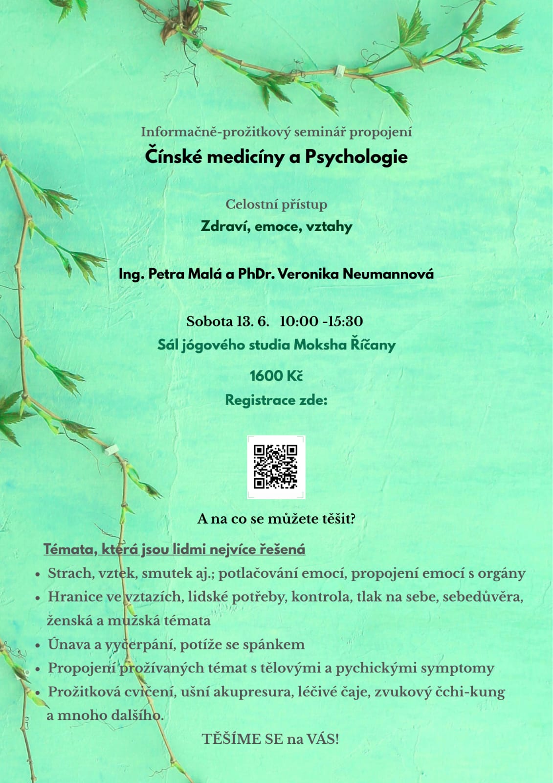 Pozvánka na celostní seminář: propojení Čínské medicíny a psychologie